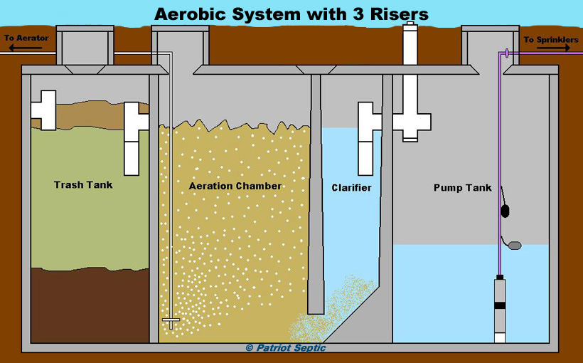 Waste from the house is fed into a "trash tank" (similar to a septic tank); septic solid waste and scum are retained in the trash tank and, as with a conventional septic tank, must be periodically removed by a septic pumping company. (aerobic septic systems require more frequent septic tank pumping than a conventional septic system.)